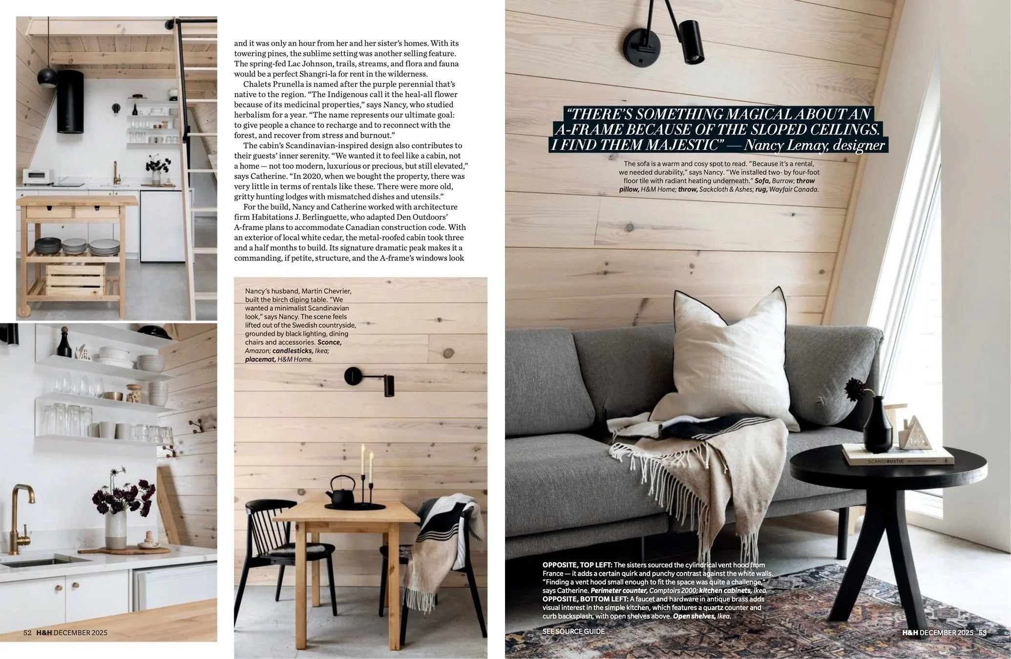 I highly recommend Brooke as a photographer for capturing beautifully styled photographs of our cabins. She consistently brings out the best in our spaces, showcasing a perfect blend of modern minimalism and warm ambiance. It's no easy task, but Brooke skillfully captures the essence and charm of our cabins, creating stunning visuals that truly impress. One aspect that particularly stands out when working with Brooke is her ability to capture our cabin bedrooms, despite their small size and the challenges they present for photography. These spaces can be tricky to shoot, but Brooke always delivers exceptional pictures that showcase the unique charm and coziness of our bedrooms. Her attention to detail and creative approach truly shine through, resulting in our favorite images that beautifully showcase the essence of our cabin retreats. She is our go-to photographer, and we couldn't be happier with the results she delivers.- PrunellaAs Featured In Canadian House and Home, December 2025 Winter Issue